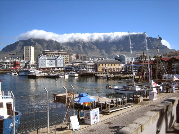 Et c'est pas fini! Au pied de la montagne, baignant entre l'Océan Atlantique et Roben Island, s'étend Victoria and Alfred Waterfront, la somptueuse, avec sa panoplie d’hôtels, restaurants, cafés, commerces, salles de cinéma, aquarium géants, yachts, ferries, autobus a deux étages, spectacles de rue, concerts etc. Ah! Que dire de ce centre touristique ? Il est in-des-crip-tible (et je pèse mes mots!) Non content d’être le plus visité de toute l'Afrique du Sud, il enregistre le plus grand nombre de touristes venus de l'étranger. C'est un lieu simplement envoûtant! Croyez-moi, on s'y rendrait 1000 fois, qu'on aurait encore rien vu!
