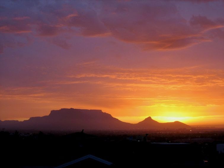 Mais à mesure que le jour se lève, ses limites se découpent timidement dans la ligne d'horizon, avec de plus en plus de précision et de couleur, jusqu'à ce que le soleil darde ses rayons matinaux pour que de splendides reflets mordorés illuminent les flancs de la Montagne de la Table.
